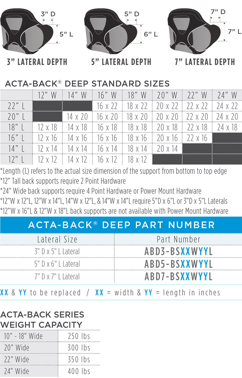 - Acta-Back Deep wings are width & angle adjustable up to 2".