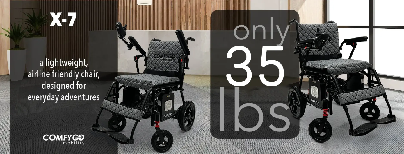 X-7 ComfyGO Lightweight Foldable Electric Wheelchair For Travel