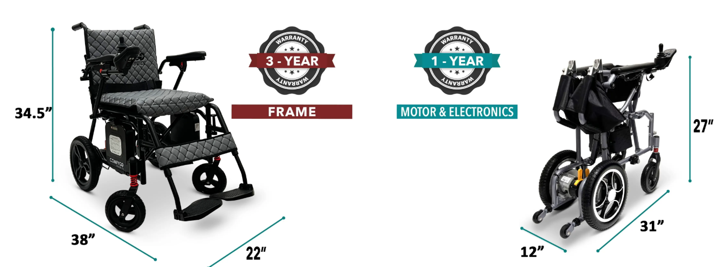 Ultra-Lightweight: With a net weight starting at just 40 lbs (without battery), this wheelchair is easy to transport and store, making it the perfect companion for any trip.