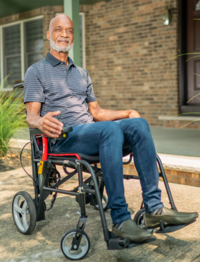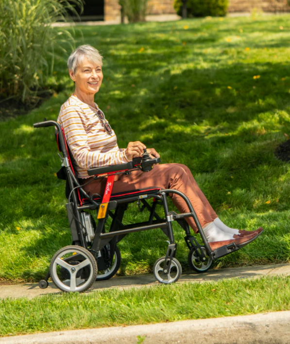 Super lightweight: The Feather Power Chair weighs, in total, only 33 lbs. Making it super easy to lift into a car or any obstacle.