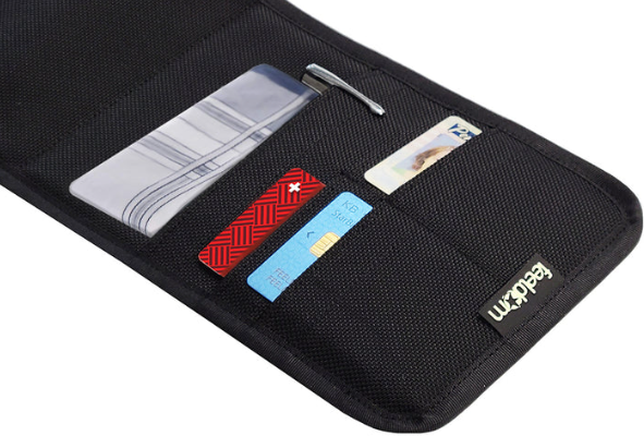 Attractive minimalist design features built-in card slots and storage pocket.