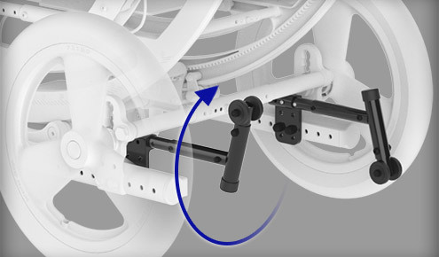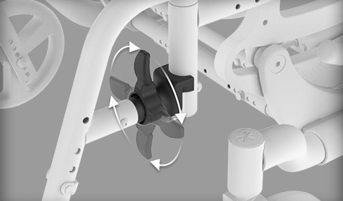 Adjustable Height Back with Fold Down Stroller Handles Compact knuckle design on the fold down stroller handle allows for a range of motion from 30° to 270°. This ensures the caretaker always has comfortable hand positioning no matter the angle of tilt the chair is in. It also enables the handles to be folded down flush tight against the back canes so the chair can be transported in tight spaces much easier.