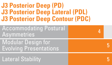 - The JAY J3's solid shell is now available in four support height levels to provide support for clients with wide ranges of torso heights and levels of injuries. The addition of five new contour shapes also provides posterior and lateral pelvic and lateral thoracic stability to clients with varying postures and functional needs.