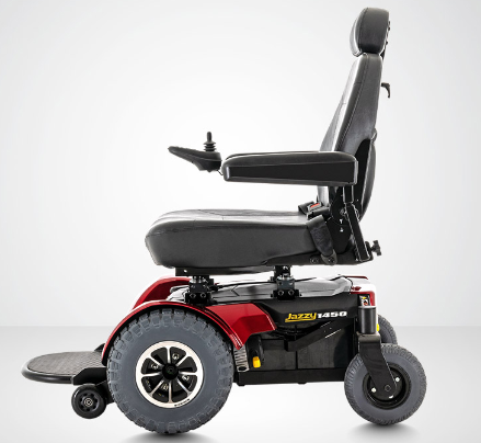 With a robust and heavy-duty design, the Jazzy® 1450 ensures powerful performance with front-wheel drive and efficient motors. Knobby drive tires provide the traction you need over uneven terrain. With speeds up to 4.5 mph, live life on your terms.