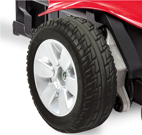The in-line, front-wheel drive technology provides tight turns around corners for optimal indoor maneuverability in small spaces and large front wheels for extra absorption over obstacles.
