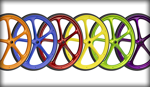 Colored MAXX MagsEven wheels can be fun! The 5-spoke standard mag is lighter, more rigid and looks great in any of our 21 color options. Maxx Mag is exclusively available on Ki products and is available in 20”, 22” and 24”.