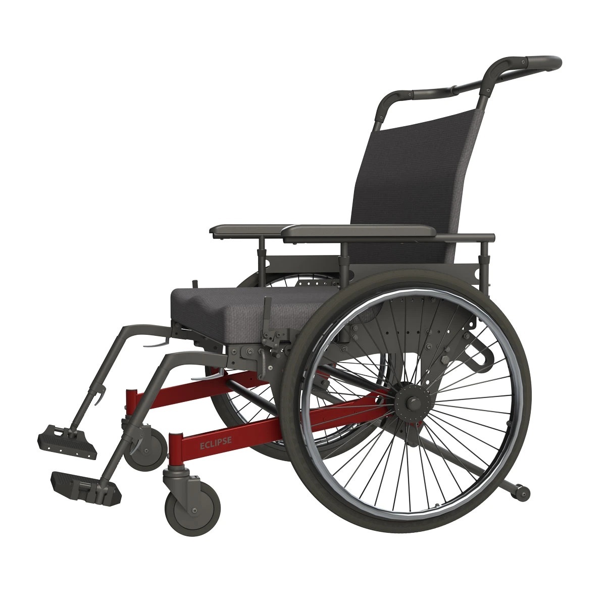 The Eclipse is a rigid manual wheelchair designed for bariatric users. Available in a wide array of sizes, the Eclipse supports up to 1000 lbs. Forward extended casters achieve optimal weight balance on the rear wheels for excellent maneuverability. Overall width is one of the narrowest available allowing for improved door clearance. Transit tie downs are now available up to 600 lbs.