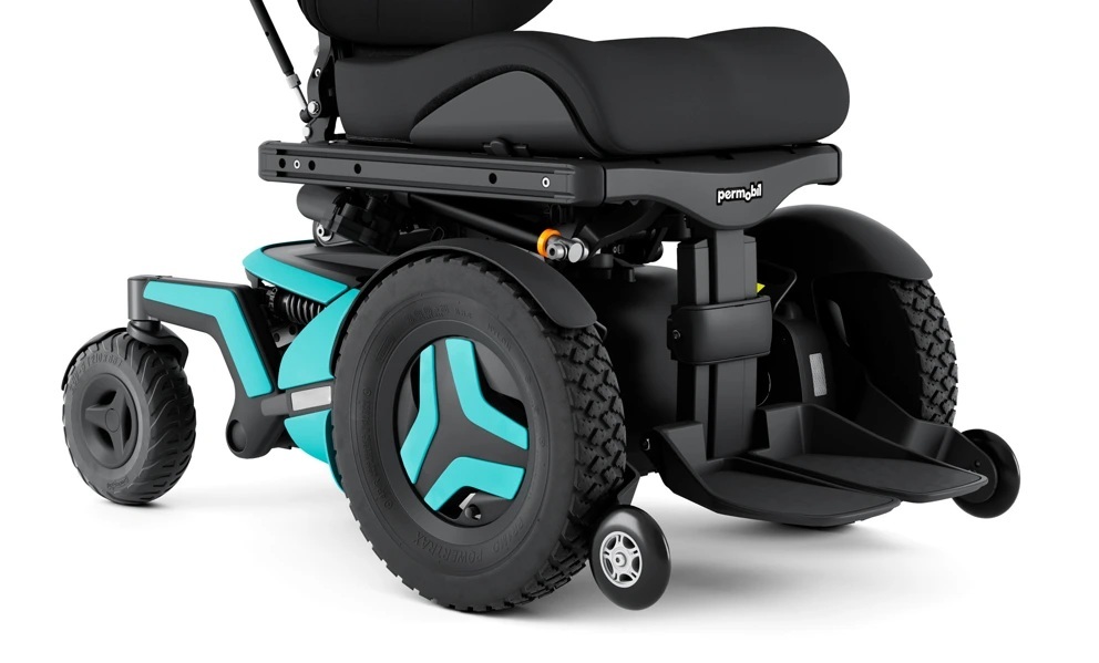 Power meets performance on the new F5 Corpus power wheelchair with a blazing 7.5mph top end speed and upgraded ComfortRide Pro suspension. All-wheel independent, fully adjustable, oil dampened shocks provide the ultimate in ride comfort while helping to reduce vibrations that can transfer from terrain up to user. Experience enhanced vibration reduction driving in all seat positions including an unprecedented 14” ActiveHeight seat elevation. Climb and reach higher with increased obstacle negotiation, exceptional motor torque and enhanced stability allowing up to 45° of ActiveReach forward tilt functionality. Standard performance options include aggressive tread tires, caster mud guard protection and 3 premium metallic colors.