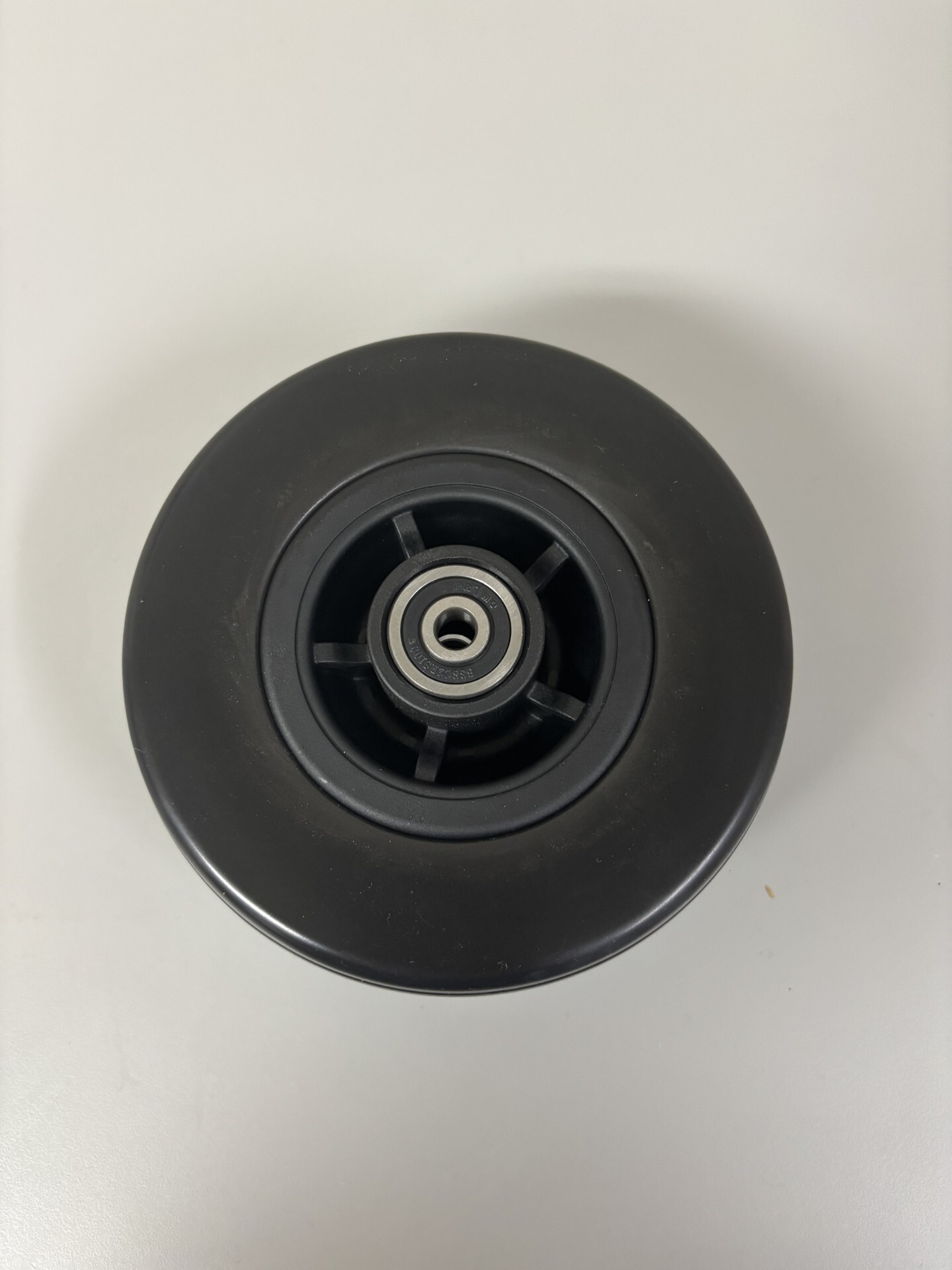 - The solid flat-free tire uses a nice ribbed tread suitable for indoors or out on the pavement