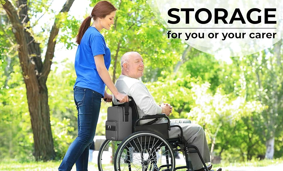 - WATERPROOF: Our electric wheelchair bag is fully waterproof, which means you can use it in all weather. Even if it's a very wet day, have the wheelchair bag exposed with full confidence.