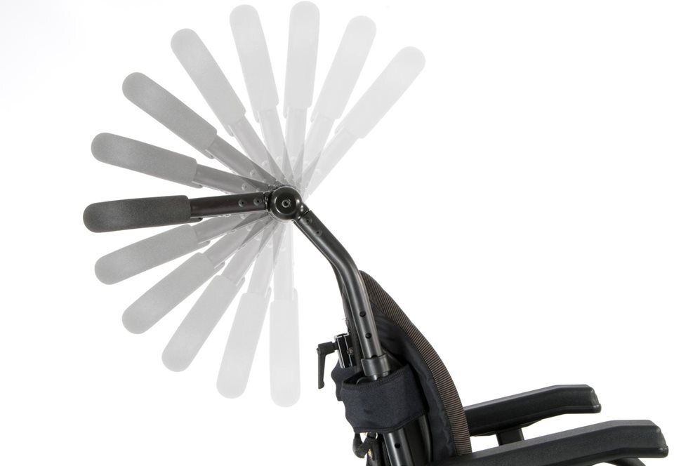 The IRIS is available with a wide variety of options to help you manage daily activities involving your child's care. The Foot Release Tilt Actuator eliminates exposed cables. Push-button hub locks located on the back canes are compact, easy to access, and easy to operate for any caregiver. Standard with the Height Adjustable backrest, the Angle Adjustable Stroller Handle has 260° of angle adjustability to fit varying caregiver heights and to enable pushing from a tilted position.